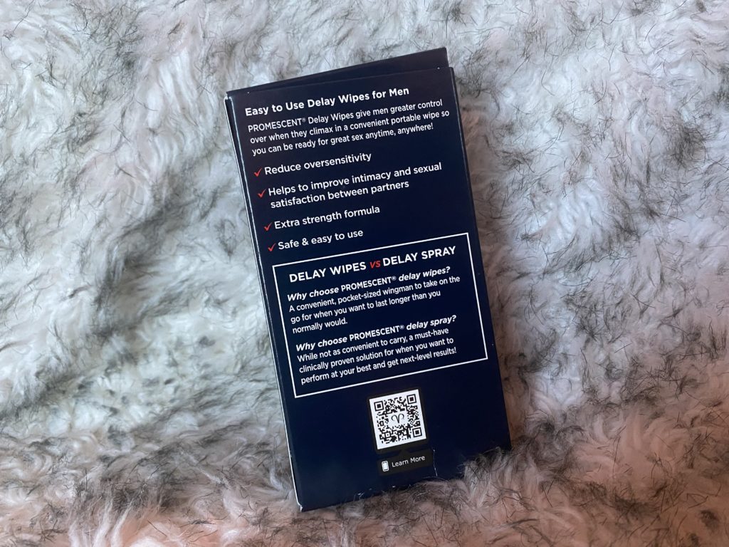 According to Promescent, their formula is 75% stronger than other brands with similar products, and their website has a very helpful comparison chart. At first, it may sound a little alarming to purposely numb your penis but the effects of the benzocaine take place on the surface, and it’s not designed to make you completely lose feeling, only to make you less sensitize to touch so you can enjoy sex for a longer period of time. The Delay Wipes aren’t supposed to be applied to your entire penis either, so you won’t be numb all over. You should be selective and only target the most sensitive areas. Promescent recommends the glans, frenulum, and underside, but everyone’s different!